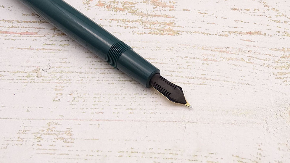 Parker Junior Duofold w zielonym kolorze, który pięknie komponuje się ze złoconymi elementami. Na skuwce jewel w kolorze pióra. Bardzo wygodne, codzienne, przyjemne pióro, a złota 14-karatowa stalówka pozwala na delikatne różnicowanie pisanej linii.