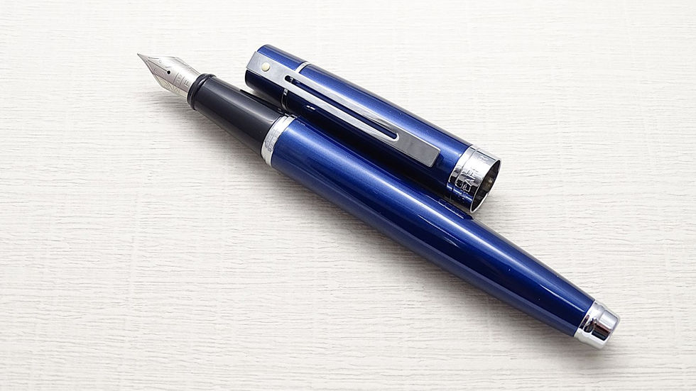 Solidne, mosiężne pióro z jednokolorową, delikatnie i elegancko zdobioną stalówką i lakierowanym na niebiesko korpusem oraz skuwką. Dość ciężkie, zamknięte waży blisko 50g. Stalówka znana z modelu GC 100 oraz Prelude - doskonale pisząca, trzymająca wskazany rozmiar.